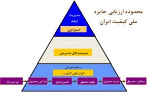 در کشور ما نیز از سال 1382 مدل بنیاد اروپایی کیفیت (EFQM) به عنوان الگوی ارزیابی سازمان های ایرانی قرار گرفت که پس از عارضه یابی انجام شده با بهره گیری از تجارب برگزاری چهار دوره ارزیابی در قالب جایزه ملی کیفیت ایران و فضای کسب وکار کشور و سطح بلوغ کیفیت در بنگاه های اقتصادی کشور ، کمیته های تخصصی جایزه تصمیم به بازنگری مدل ارزیابی گرفته و با تمرکز بر دو محور مدیریت کیفیت محصول و موفقیت پایدار سازمان مدل جایزه ملی کیفیت ایران را با بهره گیری از دانش روز جهانی و به پشتوانه تجارب سازمان ها و متخصصان ایرانی بازنگری و تدوین نمود .