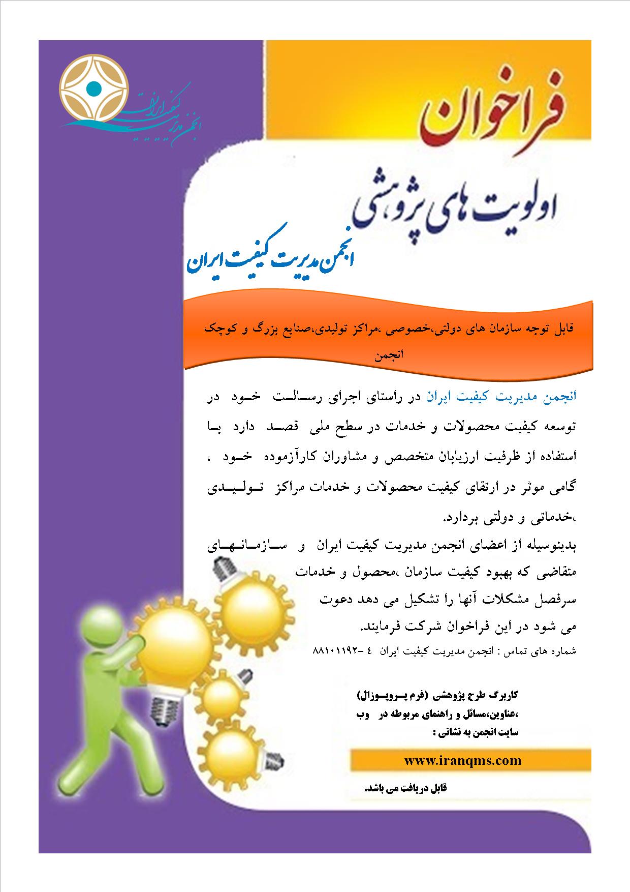لذا خواهشمند است عناوین اولویت دار نیازهای پژوهشی / پروژه ای / مشاوره ای خود را به دبیرخانه انجمن مدیریت کیفیت ایران ارسال کنید.