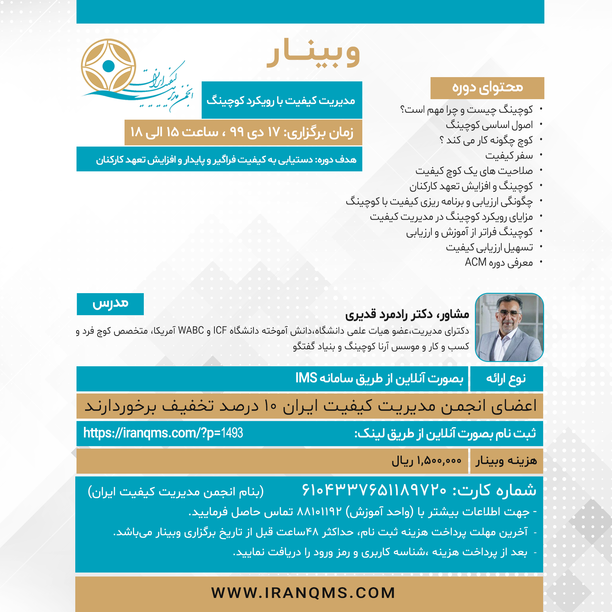 فراخوان وبینار مدیریت کیفیت با رویکرد کوچینگ
