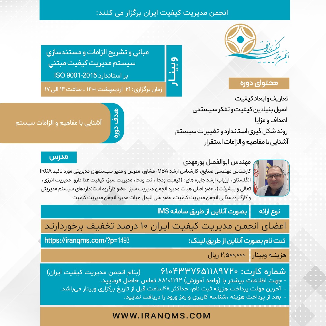 وبینار مبانی و تشريح سيستم مديريت کيفيت مبتنی بر استاندارد ISO 9001-2015