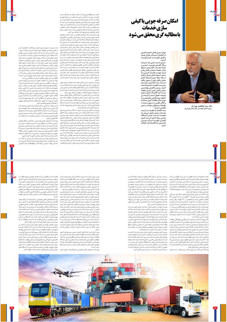دکتر سید ابوالفضل بهره دار ؛رییس انجمن مهندسی حمل و نقل ریلی ایران در گفتگو با نشریه کیفیت و مدیریت تشریح کرد: