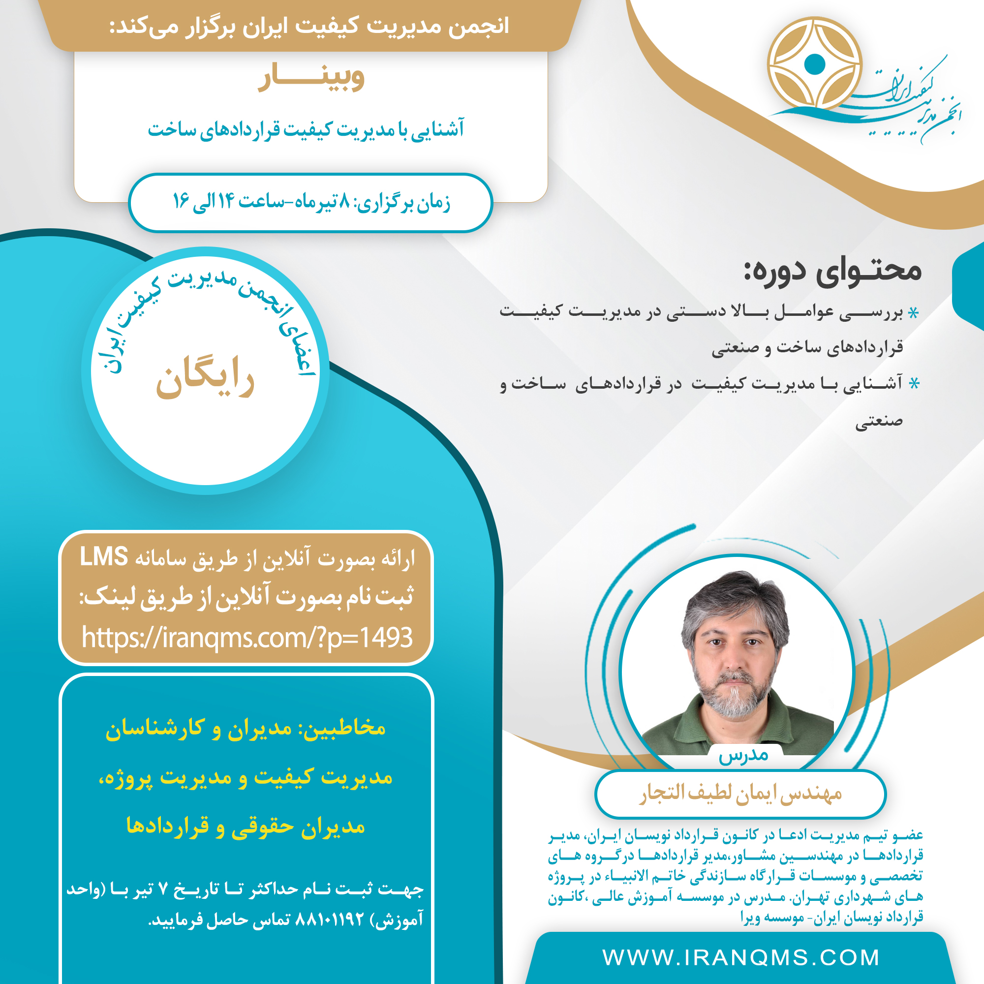 | آشنایی با مدیریت کیفیت قراردادهای ساخت | تاریخ برگزاری: چهارشنبه 8 تیر
