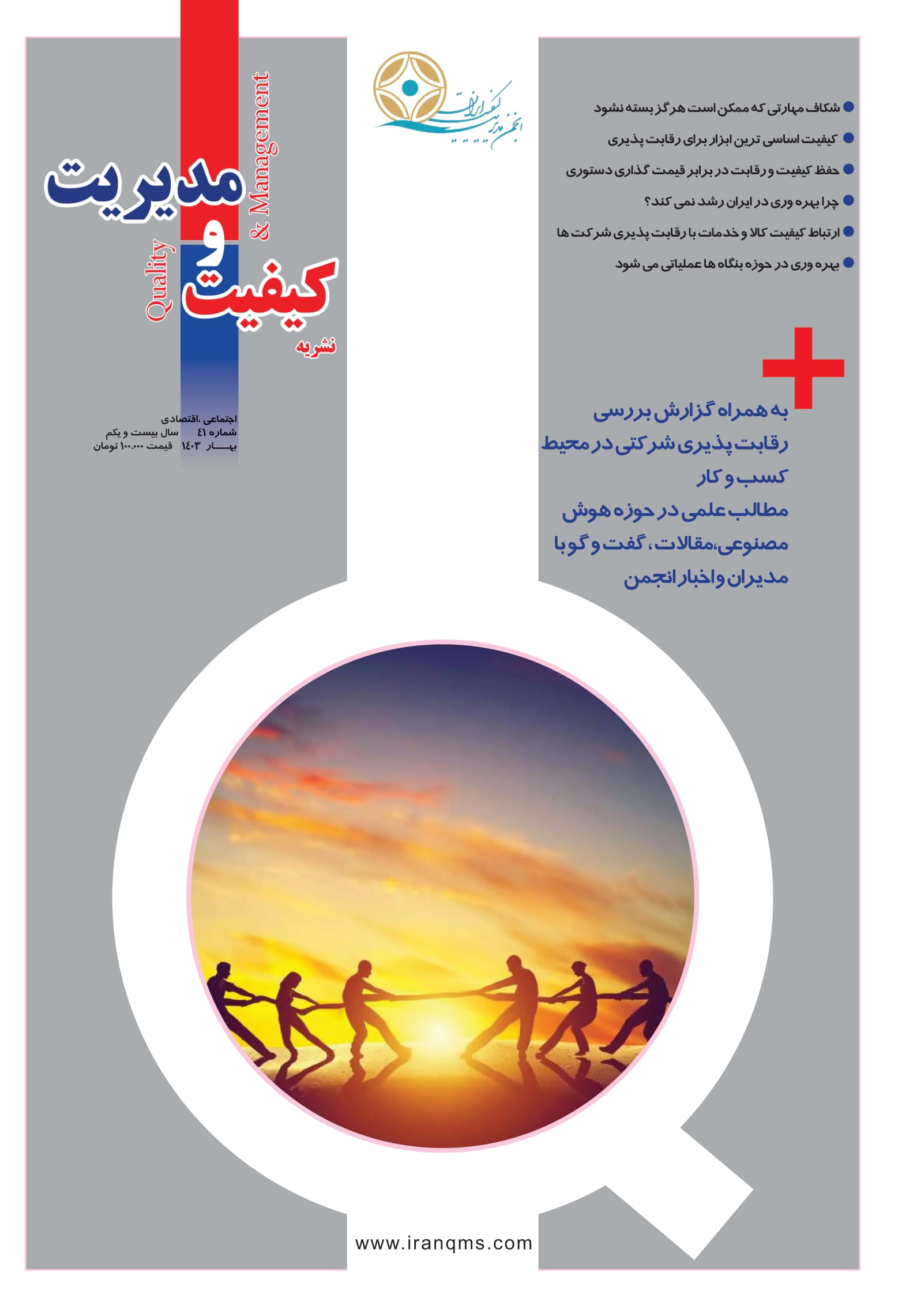 در این شماره از نشریه به موضوع «شکاف مهارتی که ممکن هست هرگز بسته نشود؟» ،«کیفیت اساسی ترین ابزار برای رقابت پذیری» «حفظ کیفیت و رقابت در برابر قیمت گذاری دستوری» ،«چرا بهره وری در ایران رشد نمی کند؟»،«ارتباط کیفیت کالا و خدمات با رقابت پذیری شرکت ها»،همراه با اخبار انجمن مدیریت کیفیت ایران ،مقالات تخصصی و مدیریتی در حوزه مدیریت کیفیت ،مصاحبه های تخصصی و مطالب علمی و معرفی سازمان های پیشرو در حوزه تعالی و کیفیت و هوش مصنوعی اختصاص دارد.