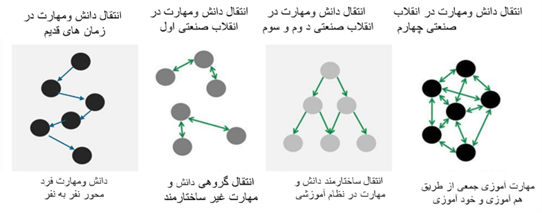نمودار زیر روند تحول در روش انتقال دانش و مهارت در گذشته و حال را نشان می دهد