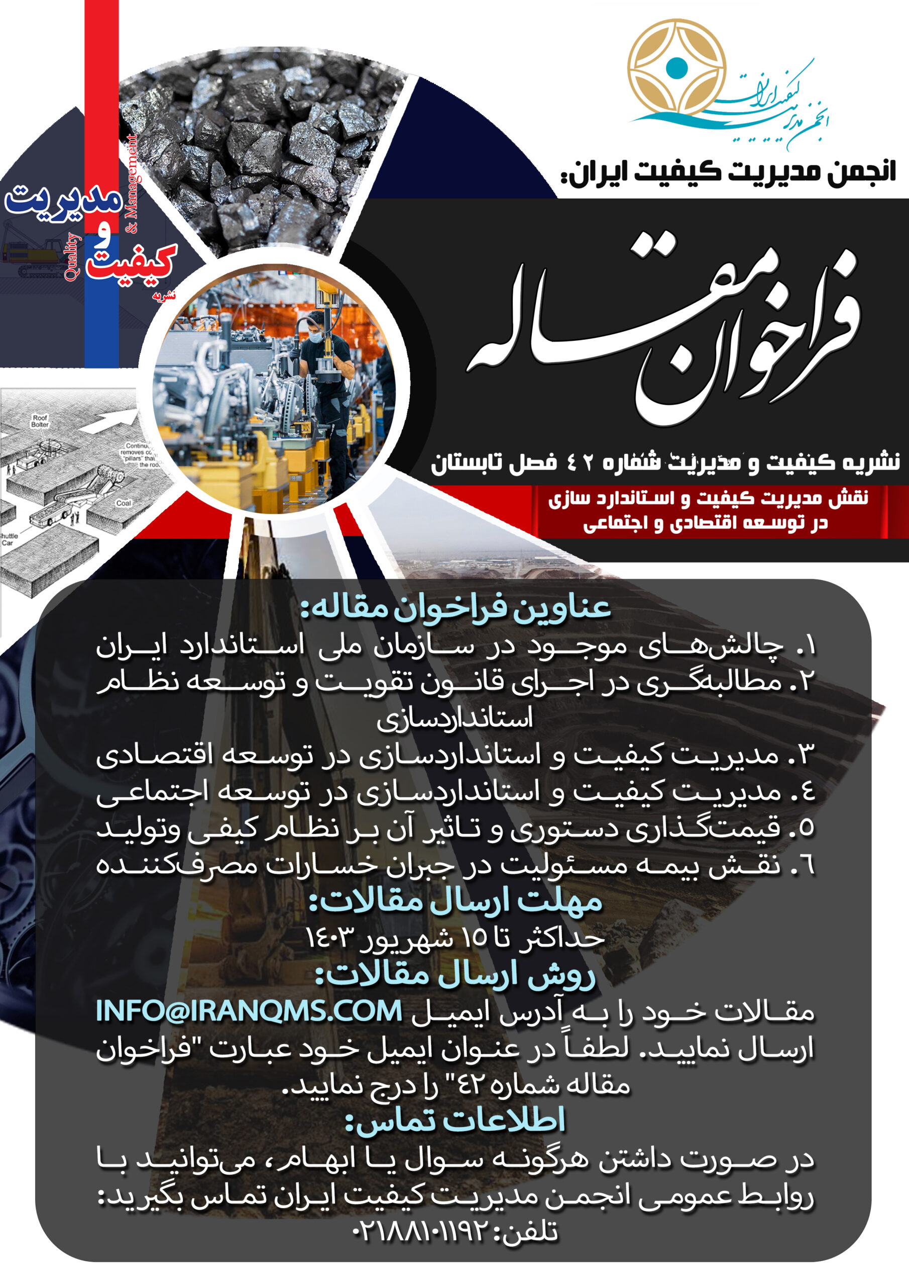 فراخوان مقاله نشریه کیفیت و مدیریت شماره 42 فصل تابستان
