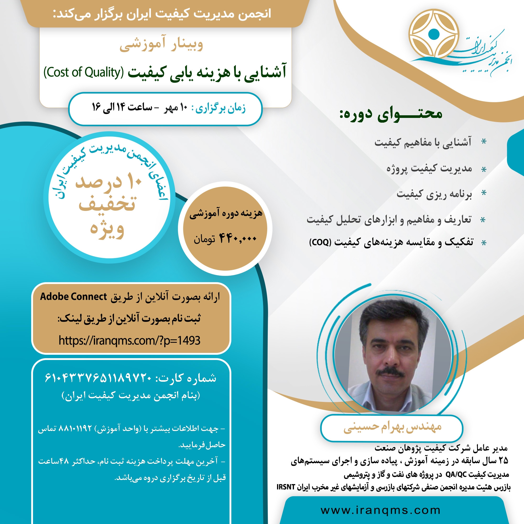 فراخوان برگزاری وبینار آموزشی آشنایی با هزینه یابی کیفیت (Cost of Quality)