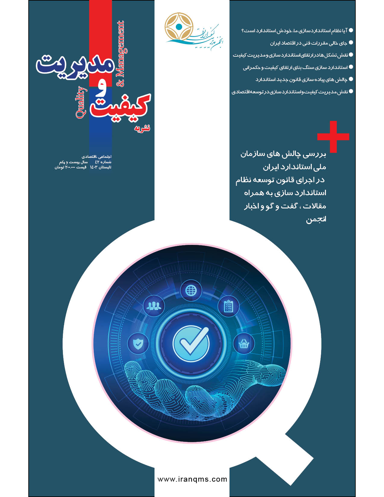 شماره 42 نشریه کیفیت و مدیریت، نشریه تخصصی انجمن مدیریت کیفیت ایران، با محتوای ویژهای در خصوص قانون “تقویت و توسعه نظام استانداردسازی” منتشر شد. این شماره به بررسی چالشها و راهکارهای مرتبط با اجرای این قانون و همچنین تحلیل مسائل ساختاری و قانونی در سازمان ملی استاندارد ایران پرداخته است.