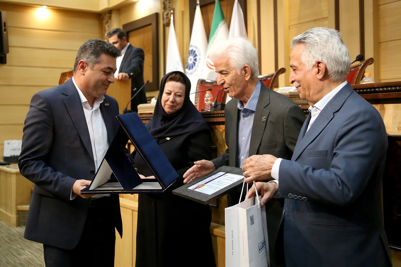 در ادامه مراسم تجلیلی از خانواده مرحوم کاشانی توسط انجمن مدیریت کیفیت انجام شد و لوح و تندیس حامیان نهضت ملی کیفیت به دختر مرحوم کاشانی اهدا شد.