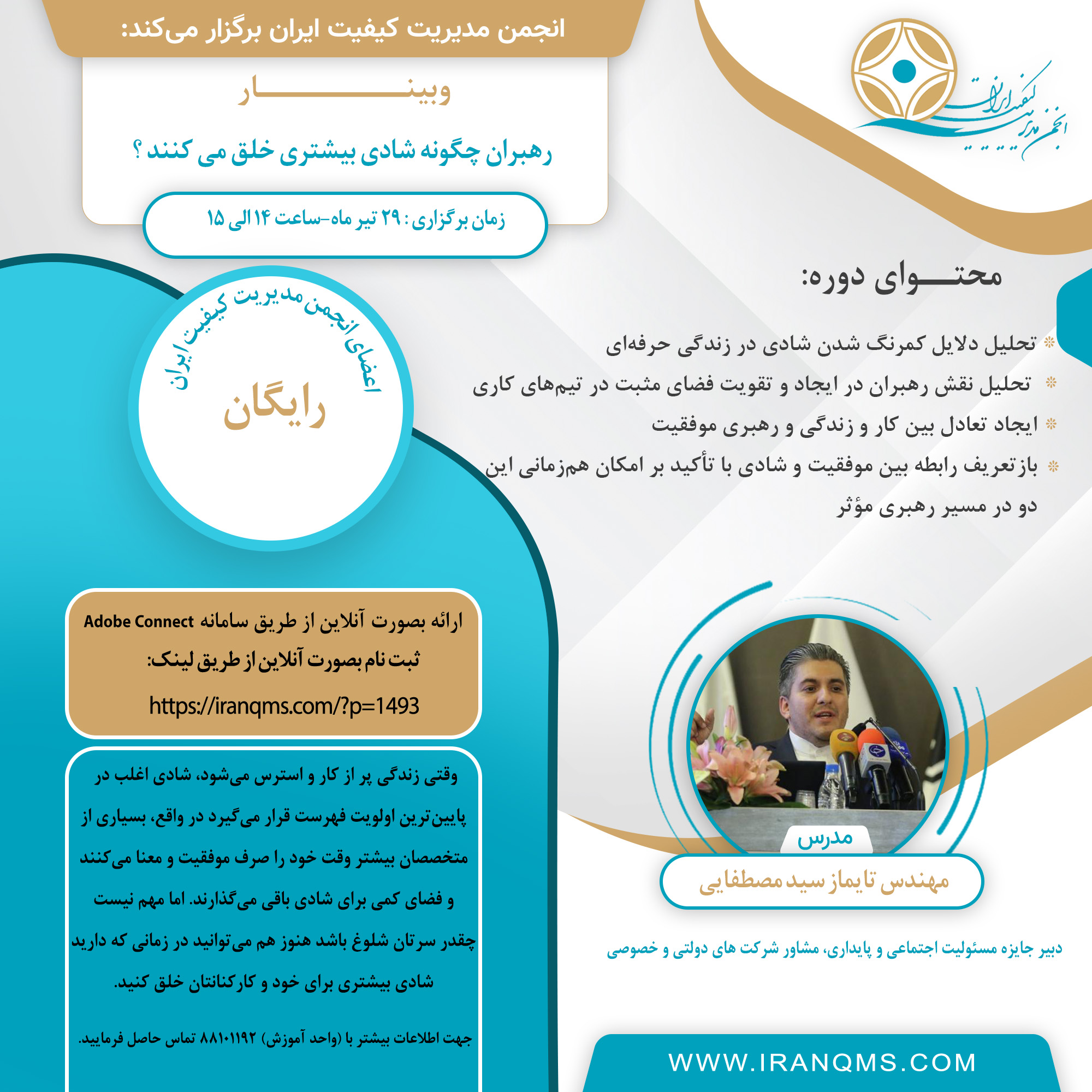 انجمن مدیریت کیفیت ایران در راستای ارتقای مهارتهای نرم و توانمندیهای مدیریتی، وبینار آموزشی با عنوان: