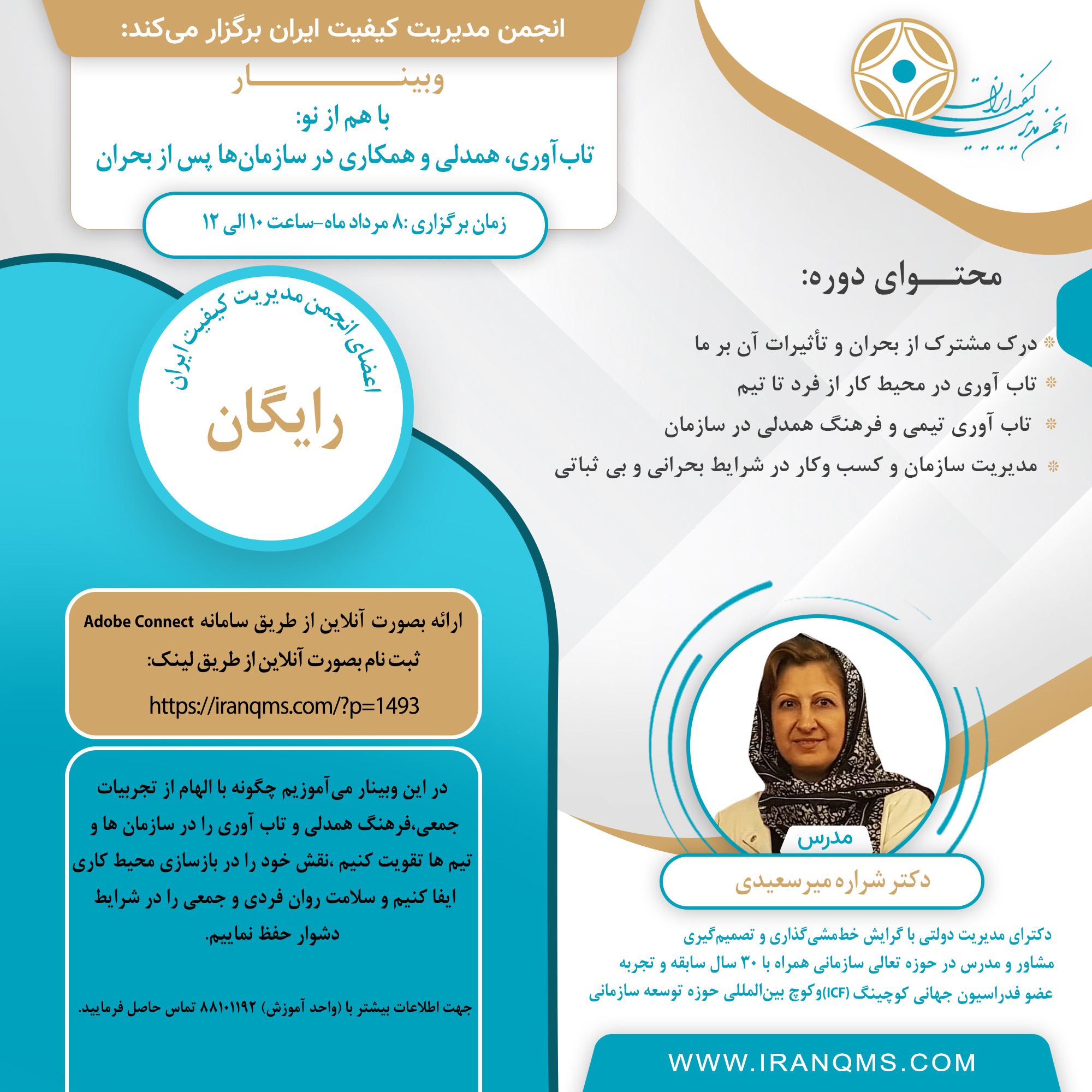 فراخوان برگزاری وبینار آموزشی رایگان “با هم از نو: تابآوری، همدلی و همکاری در سازمانها پس از بحران”