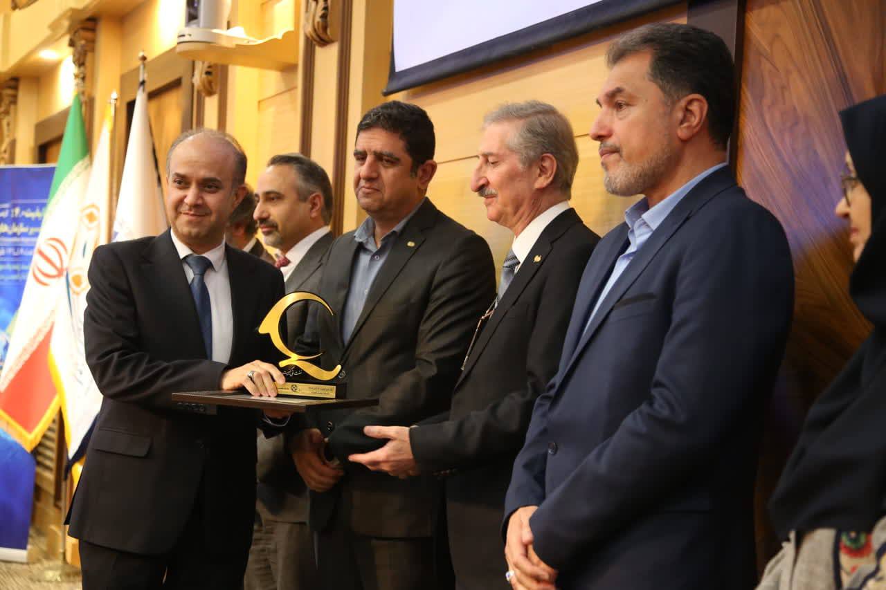 خانم مهندس لیلا احمدی و آقای چاووش حبیبیراد (شرکت بارز) بهعنوان دارندگان رتبه چهارستاره - تقدیر از شرکتهای تکماکارون و هلدینگ راه و شهرسازی بهعنوان حامیان نهضت ملی کیفیت